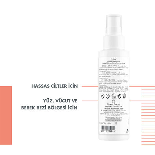 Bu sprey, ciltte oluşabilecek tahrişler, kızarıklıklar, kabuklanmalar ve kuruluk gibi problemleri hafifletmeye yardımcı olur. Aynı zamanda, cildin nem dengesini korur ve cildi nemlendirir. Hassas ciltler için özel olarak formüle edilmiş olup alkol, parfüm ve renklendirici içermez.