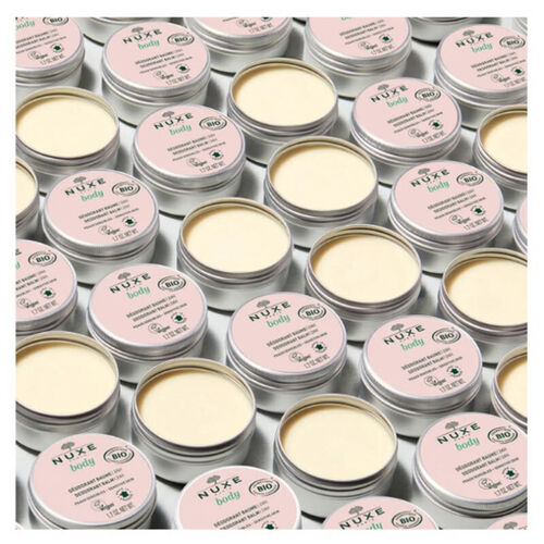 Nuxe Body Deodorant Balm, kadınlar için özel olarak formüle edilmiş bir roll-on stick deodoranttır. Özellikle hassas ciltler için idealdir. Bu ürün, Nuxe'un doğal içeriklerle zenginleştirilmiş formülü sayesinde cilde nazikçe bakım yapar ve ferah bir his sağlar. Hoş kokusuyla gün boyu tazelik ve konfor sunar.