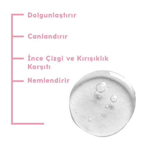 - Hyaluronik Asit: Cildin doğal nem seviyesini artırmaya yardımcı olan güçlü bir nemlendiricidir. Cilt bariyerini destekleyerek su kaybını önler ve cildin dolgun ve genç görünmesini sağlar.