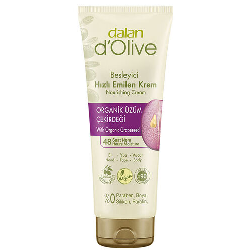 Dalan Dolive Organik Üzüm Çekirdeği Kremi, doğal içeriği ile cilt bakım rutininizin vazgeçilmez bir parçası olacak. Cildinizi beslerken sağlıklı ve doğal bir parlaklık kazanmasına yardımcı olur.