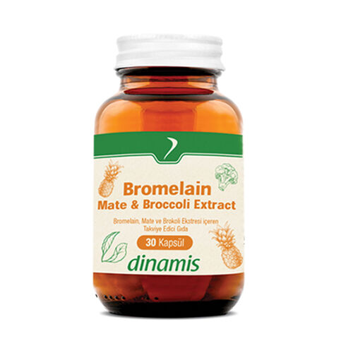 Dinamis Bromelain Mate-Broccoli Extract Takviye Edici Gıda 30 Kapsül, vücudunuzun günlük destek ihtiyaçlarını karşılamak için formüle edilmiş bir takviye ürünüdür. Her bir kapsül, bromelain ve brokoli özleri ile zenginleştirilmiştir. Bromelain, sindirimi destekler ve anti-enflamatuar özelliklere sahiptir. Brokoli özü ise antioksidanlar bakımından zengindir ve bağışıklık sistemini destekler. Bu kombinasyon, günlük sağlık ve wellness hedeflerinize ulaşmanıza yardımcı olmak için ideal bir seçenektir. Her kapsül, etkili ve doğal bileşenleri optimal düzeyde sunmak için özenle formüle edilmiştir. Dinamis markası, sağlık takviyelerinde kalite ve güvenilirliği simgeler.