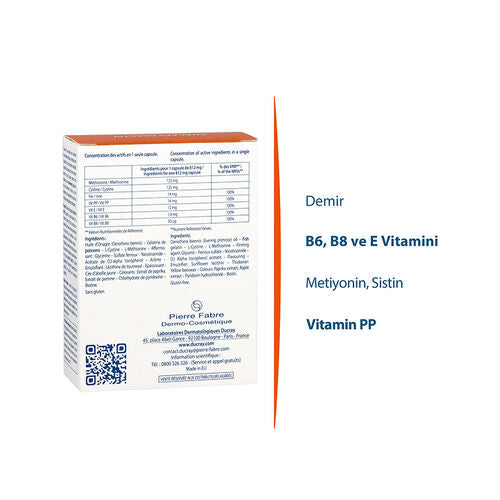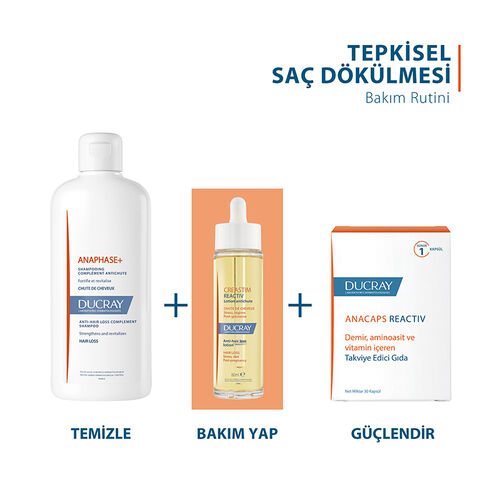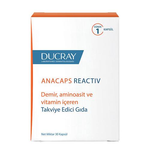Ducray Anacaps Reactiv Takviye Edici Gıda 30 Kapsül, dermatolojik olarak test edilmiş ve güvenilirliği kanıtlanmış bir üründür. Saç sağlığını desteklemek ve saç dökülmesi sorununa karşı etkili bir çözüm arayanlar için ideal bir takviye edici gıdadır.