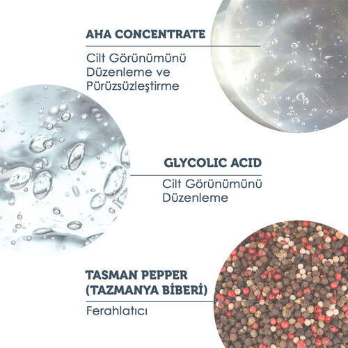 1. Etkili Peeling İçeriği: Cilt yüzeyindeki ölü hücreleri nazikçe çıkararak cildin yenilenmesini sağlar.