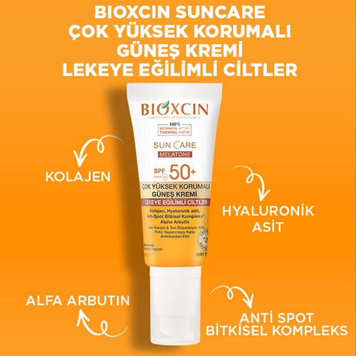 Bioxcin Sun Care Lekeli Ciltler için Güneş Kremi SPF 50+, ciltteki lekeleri hafifletmek ve korumak için özel olarak formüle edilmiştir. Yüksek SPF 50+ koruma faktörü ile güneşin zararlı UVA ve UVB ışınlarına karşı etkili bir koruma sağlar. Cildi güneşin neden olabileceği lekelere karşı korurken aynı zamanda cildinizi nemlendirir ve besler. Hafif yapısı sayesinde cilt tarafından kolayca emilir ve yağlı bir his bırakmaz. Renkli formülü sayesinde cilt tonunu eşitler ve anında doğal bir görünüm sağlar. Günlük kullanıma uygundur ve cildinizi güneşin zararlı etkilerine karşı korurken aynı zamanda güneş lekelerinin oluşumunu önlemeye yardımcı olur. Bioxcin güneş kremi, lekeli ciltler için önerilen dermatolojik olarak test edilmiş bir üründür ve düzenli kullanıldığında cildin genel görünümünde iyileşme sağlar.