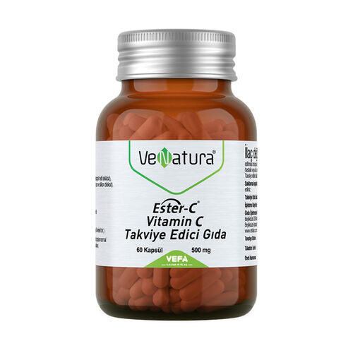 VeNatura Ester-C Vitamin C Takviye Edici Gıda, her kapsülünde yüksek kalitede Ester-C vitaminini içermektedir. Ester-C, geleneksel C vitamini formundan daha uzun süre vücutta kalabilir ve daha kolay emilir. Bu takviye edici gıda ürünü, günlük C vitamini ihtiyacını karşılamak için ideal bir seçenektir. Her bir kapsül, güçlü antioksidan özellikleri ile bağışıklık sistemini desteklerken, cilt sağlığını korumaya yardımcı olabilir. VeNatura'nın titiz kalite standartlarına göre üretilen bu ürün, etiketinde belirtilen C vitamini miktarını güvenilir bir şekilde sağlar. 60 kapsül içeren ambalajıyla, düzenli kullanımı kolaylıkla sağlanabilir ve günlük sağlık rutininin bir parçası haline getirilebilir.