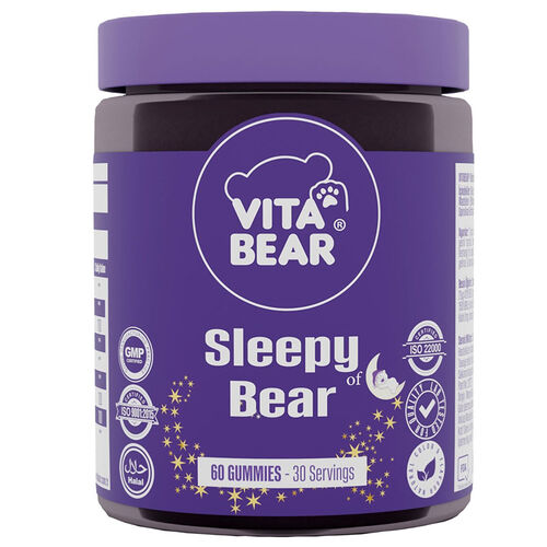 Vita Bear Sleepy Bear, sağlıklı bir uyku için özel olarak formüle edilmiş bir takviye edici gıdadır. Her bir pakette 60 adet ayı şeklinde sakız bulunmaktadır. Vita Bear markası, kaliteli vitamin ve sağlık ürünleri ile bilinmektedir.