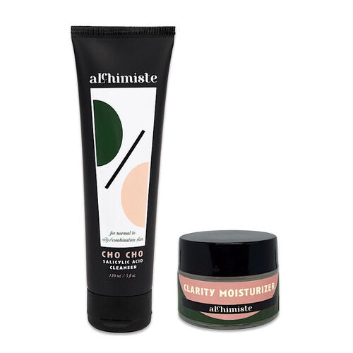 Alchimiste Yağlı Ciltler İçin 2'li Temel Bakım Seti, yağlı ve karma ciltler için özel olarak formüle edilmiş etkili bir cilt bakım ürünüdür. Bu set, cildinizi derinlemesine temizlerken aynı zamanda nemlendirir ve dengeler. İşte ürünün detaylı özellikleri:
