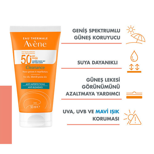 Avene Solaire Cleanance SPF 50+, güneşe çıkmadan önce cilde uygulanarak, cildi UVA ve UVB ışınlarına karşı korur. Hassas ciltler dahil olmak üzere, tüm cilt tipleri tarafından güvenle kullanılabilir.