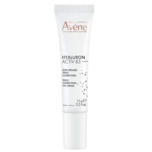 Avene Hyaluron Activ B3 Göz Çevresi Kremi 15 ml, hassas göz çevresi için özel olarak geliştirilmiş olup paraben içermez. Günlük kullanıma uygundur ve dermatolojik olarak test edilmiştir.
