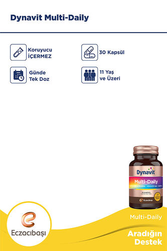 Siz de günlük vitamin ve mineral ihtiyacınızı karşılamak için Eczacıbaşı Dynavit Multi Daily 30 Kapsülü tercih edebilirsiniz. Sağlıklı bir yaşam için önemli bir adım atın!