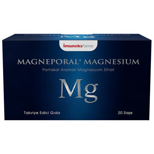 İmuneks Farma Magneporal Magnesium, sağlık ve wellness için önemli bir mineral olan magnezyumu içeren bir takviye ürünüdür. Her bir kutuda 20 adet bulunmaktadır. Magnezyum, vücudumuzdaki birçok biyolojik işlev için gereklidir ve özellikle kemik sağlığı, kas fonksiyonları ve sinir iletimi gibi süreçlerde önemli rol oynar.