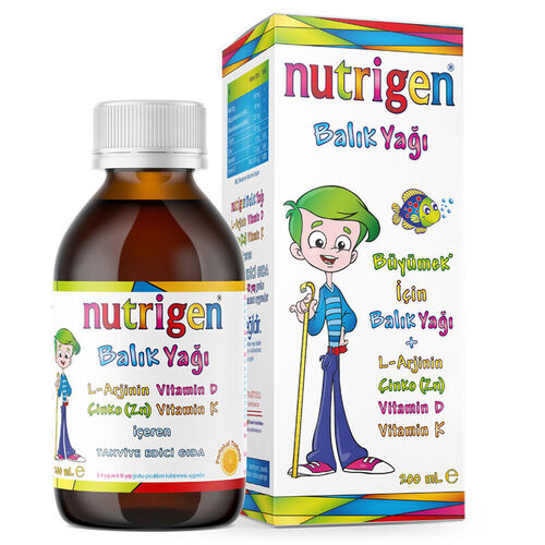 - Vitamin D3: Kemik ve diş sağlığı için önemli olan D vitamini, Nutrigen Balık Yağı Şurup'ta çocukların ihtiyaçlarını karşılamak üzere bulunmaktadır.