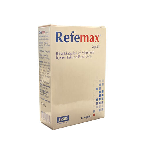 Refemax, Assos İlaç tarafından üretilen ve bitki ekstreleri içeren bir takviye edici gıda ürünüdür. Her bir kapsül, özenle seçilmiş bitki özleriyle formüle edilmiştir ve günlük sağlık desteğinize katkıda bulunmak için tasarlanmıştır.