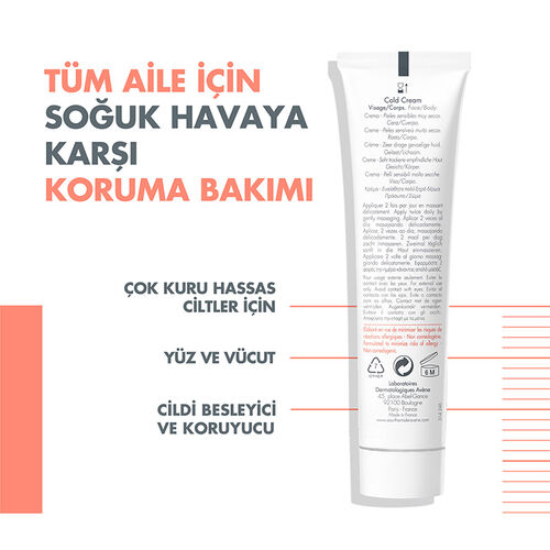 Avene Cold Cream Kuru-Çok Kuru Ciltler İçin Nemlendirici krem düzenli kullanıldığında cildin nem dengesini korur, kuruluk ve tahrişleri önler. Günlük cilt bakım rutininize ekleyerek cildinizin ihtiyacı olan yoğun nemlendirmeyi sağlayabilirsiniz.