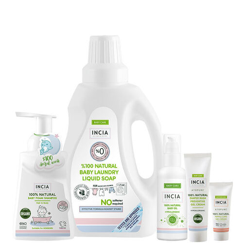 INCIA Yenidoğan Paketi, anne bebek sağlığı uzmanları tarafından önerilen doğal içeriklerle formüle edilmiştir. Bebek cildinin ihtiyaçları düşünülerek hazırlanan bu ürünler, güvenle kullanılabilir ve bebeklerin sağlıklı bir şekilde büyümesine katkıda bulunur.