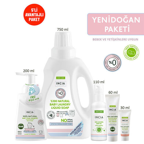 INCIA Yenidoğan Paketi, yeni doğmuş bebekler için özenle seçilmiş ürünler sunar. Bebeklerin hassas cildini korumak ve doğal dengesini desteklemek amacıyla özel olarak formüle edilmiştir.